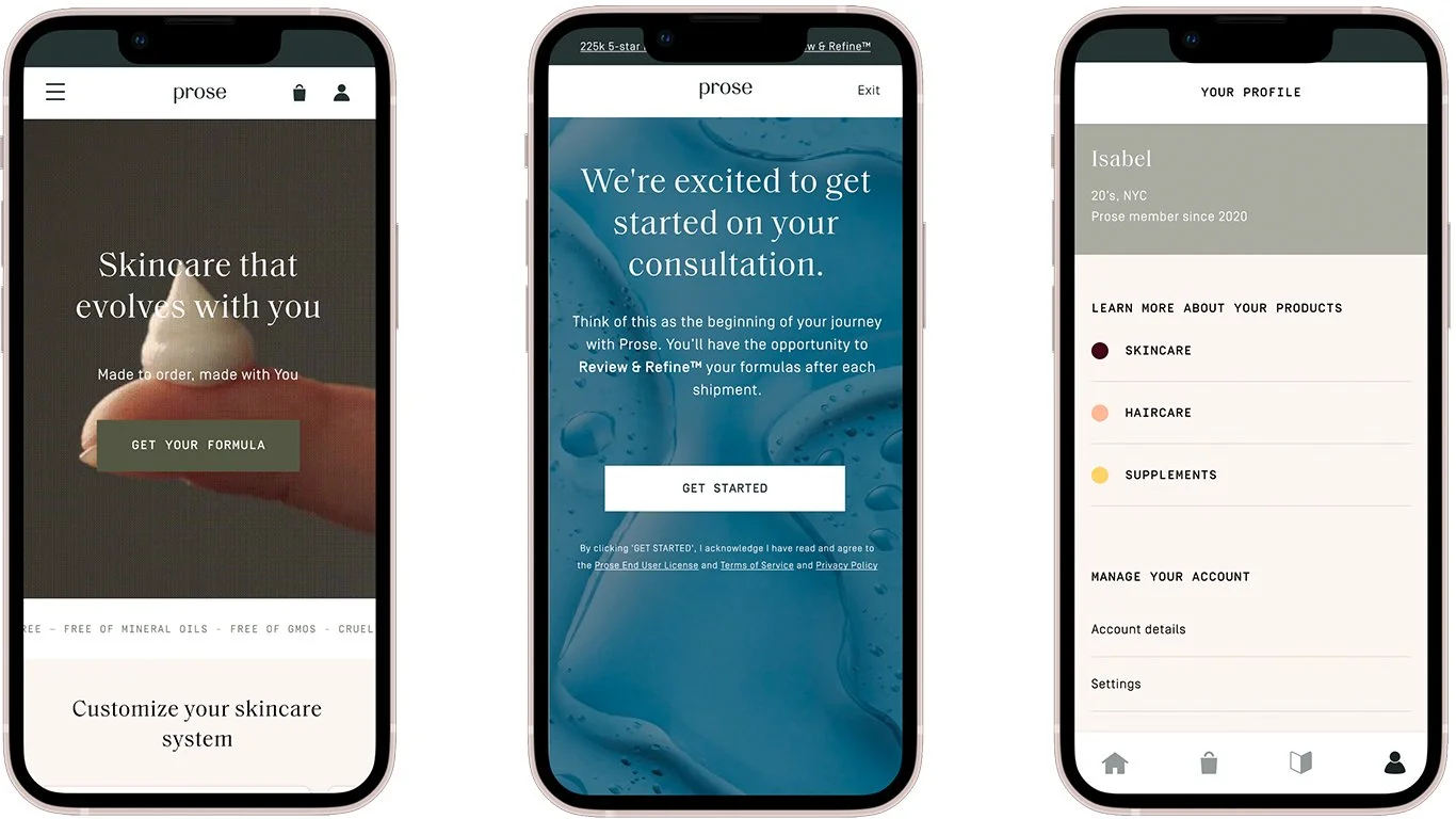 Prose is a D2C custom formulated haircare for individuals. Start with the easy online